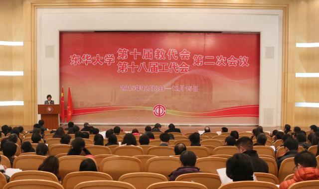 我校第十届教代会暨第十八届工代会第二次会议于12月15日在松江校区闭幕。本次教代会期间,学校中心组专题研讨加强和改进教代会工作,校党委书记朱民强调,要深入贯彻落实党的十八届五中全会精神,深刻认识学校发展形势,把握高等教育改革机遇,强化内涵发展、特色发展、创新发展理念,以“时不我待”的责任感、使命感和紧迫感,抓好学校改革发展稳定各项重点工作,坚持以改革促发展、以发展惠民生,让全校教职员工共享学校发展成果,为学校各项事业建设凝聚起最广泛的共识和力量。