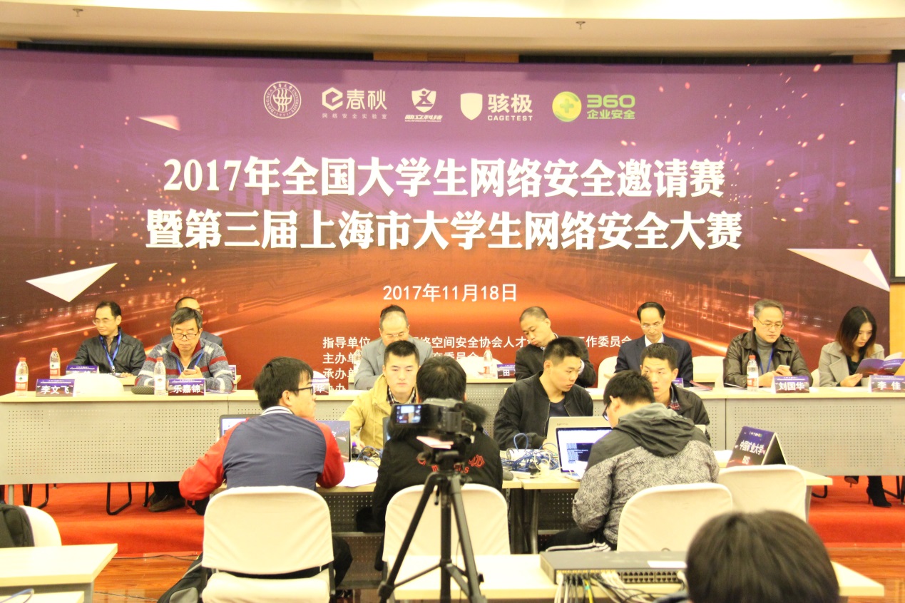 为宣传普及网络安全知识,提高大学生网络安全防护意识和技能,加强大学生实践能力和创新精神,不断提高网络安全人才培养质量,11月18日,由我校承办的2017年全国大学生网络安全邀请赛暨第三届上海市大学生网络安全大赛在延安路校区举行,经过6个小时的角逐,我校参赛队伍获网络攻防大赛特等奖1项、三等奖2项和信息安全作品赛二等奖1项、三等奖2项。这也是我校第一次摘得该项赛事桂冠。上海市委办公厅、上海市经信委,中国网络空间安全协会人才培养教育工作委员会有关专家等应邀出席,我校相关部处及学院负责人、部分企业嘉宾参与观摩。