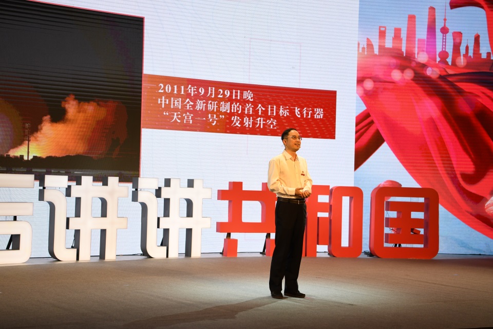 “给00后讲讲共和国”演讲展示活动以“我和我的祖国”为主题,陈南梁教授与上海对外经贸大学教授、云南省贸促会会长刘光溪,上海音乐学院俞丽拿教授,中共一大会址纪念馆副馆长徐明,上海工程技术大学校友、C919主任飞行师蔡俊,上海交通大学校友、成为资本合伙人沙烨一起受邀与00后对话者朱恒毅走上讲台进行精彩分享,六位嘉宾结合本校、本行业或专业领域的历史、学科、文化等特色优势进行剧场式演讲,以亲历故事生动展示新中国成立70年来的光辉历程、伟大成就和宝贵经验。陈南梁教授与大中小学生分享了题为“我的东华情,我的航天梦”的主旨演讲,他从团队为“天宫”系列飞船编织“能源翅膀”入手,讲述东华人积极对接国家战略特需、服务国计民生,为国防建设、经济发展、人民生活改善做出的重要贡献。