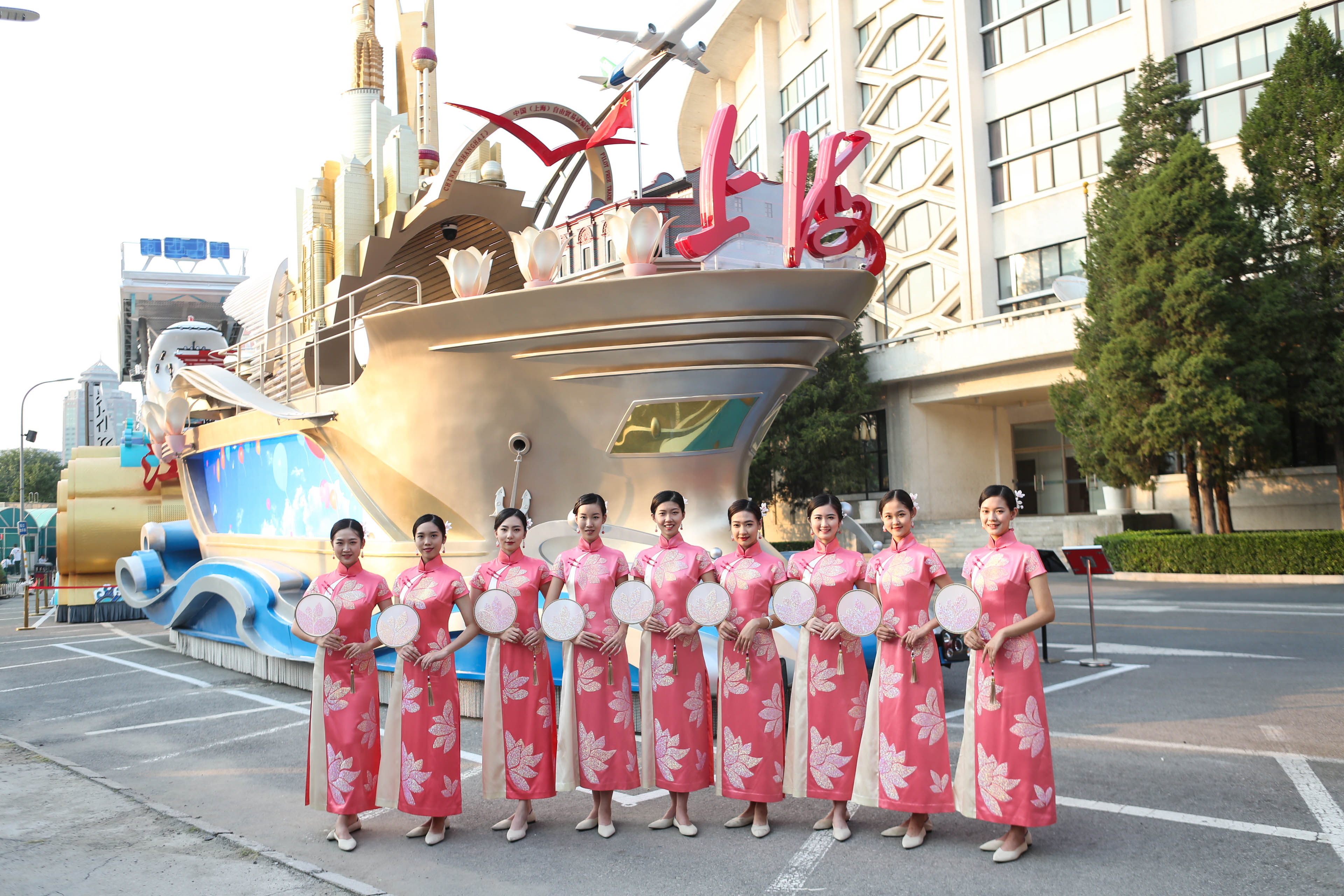 其中,“奋进上海”彩车犹如一艘破浪前行的希望航船,船首正中是两个引人注目的红色大字——上海,彩车上7位温婉佳人,她们身着海派旗袍,面带微笑,手执团扇,代表上海为祖国母亲献礼。那么,她们到底来自哪里?她们身穿的旗袍到底有什么独特的设计?让我们来一一揭秘。