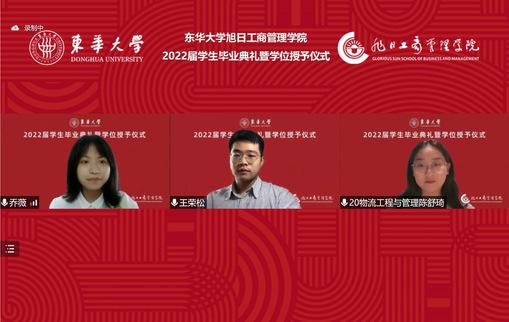 6月21至24日,我校2022届学生毕业典礼暨学位授予仪式在云端举行。党委书记刘承功,校长、中国工程院院士俞建勇,副校长舒慧生,校学位评定委员会秘书长俞昊出席毕业典礼,各学院党政负责人,教师、在校生代表及校友,近6000名毕业生和学生家长等分学院在云端共同见证毕业庄严一刻。典礼由舒慧生主持。