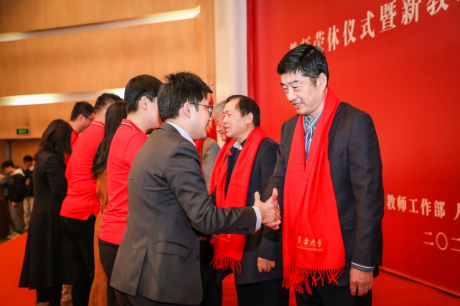 刘承功代表学校向荣休教师致以感谢,向新教职工表达期许。他指出,做“经师”和“人师”相统一的“大先生”,是党和人民对教师的深切嘱托,是人民教师的光荣使命。学校将老教师荣休仪式与新教师结业典礼一并举行,新老教师同上“毕业大课”已成为优良传统。荣休教师长久以来为学校建设发展付出艰辛努力,学校要用心用情用力做好退休工作,加强对老同志生活上的照顾、精神上的关怀。他希望,退休教职工继续为学校加快推进“双一流”建设、实现高水平研究型大学奋斗目标献智献策,在人才培养、学科建设、学术研究、队伍建设等各方面发光发热;新进教师要奋力在不同岗位创造出色的工作业绩,在建设教育强国、科技强国、人才强国的宏大事业中实现人生价值,作出应有贡献。