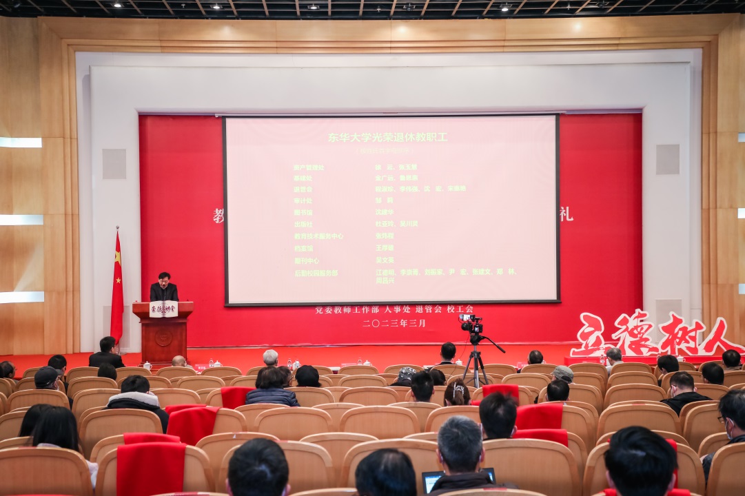 3月7日,2022年教师荣休仪式暨新教职工入职培训结业典礼在松江校区举行,87名荣休教师、61名新教职工参加仪式。党委书记刘承功出席活动并讲话,副校长赵震、退管会第一副主任王以刚、校关工委副主任浦解明出席。相关职能部门负责人、二级单位党组织负责人、“崇德讲堂”导师等参加活动。党委教师工作部部长、人事处处长张耀鹏主持活动。
